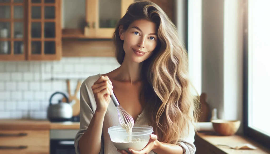 Je mélange 2 à 3 cuillères de poudre de shikakai avec de l’eau tiède pour obtenir une pâte épaisse et homogène. J’applique ce mélange sur mon cuir chevelu et mes longueurs, en insistant sur les racines. Après 30 minutes, je rince abondamment à l’eau tiède. Ce masque nourrit en profondeur, renforce les cheveux et réduit les irritations du cuir chevelu.
